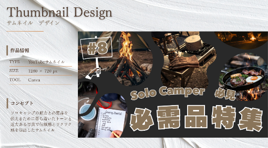 【サムネイル】ソロキャンプ必需品のYouTubeサムネイル