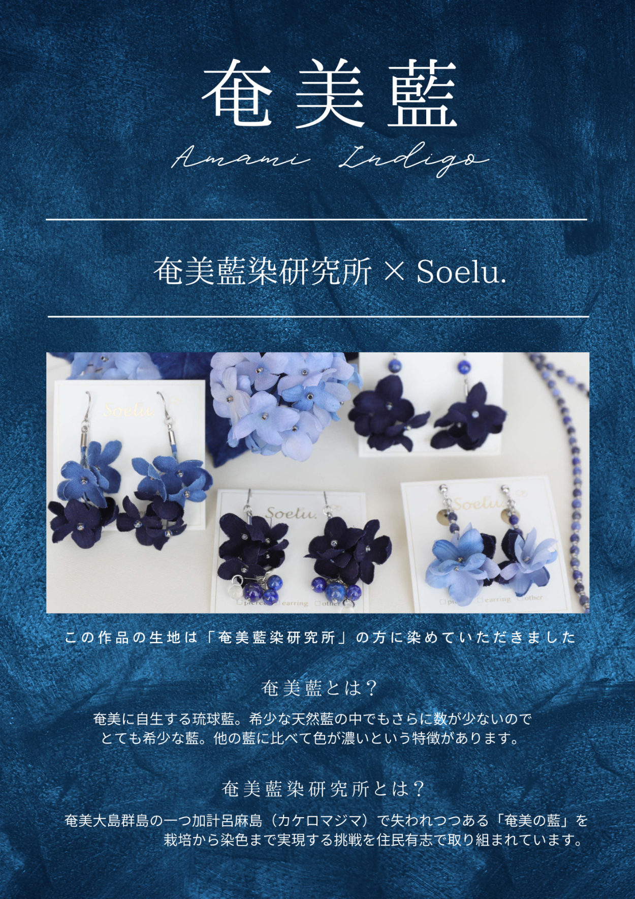 琉球藍を使った奄美の藍染文化の復活を目指し、日々活動をされている奄美藍染研究会さんと自身のアクセサリーブランドSoelu.としてminneのコラボレーション企画に参加しました。