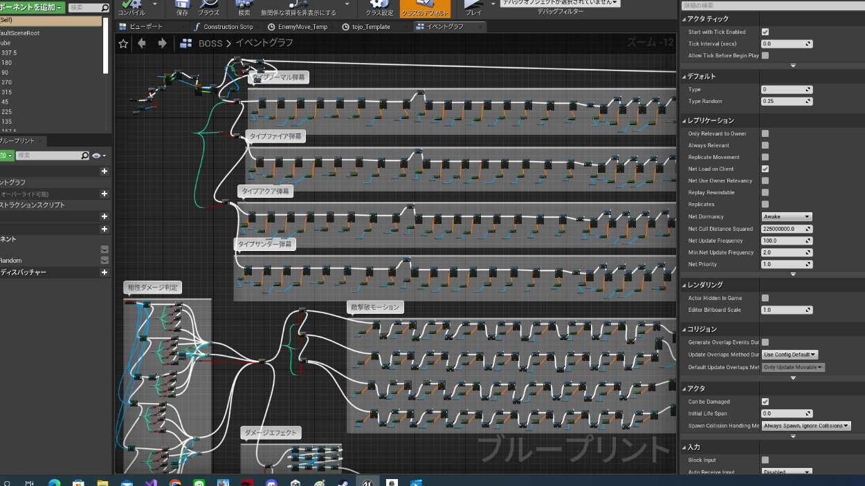ただこれも全てブループリントで管理してしまったのでノードの量がとてつもなく多くなってしまいました…(あとforやwhile回せるところはそれで回した方がよかった)