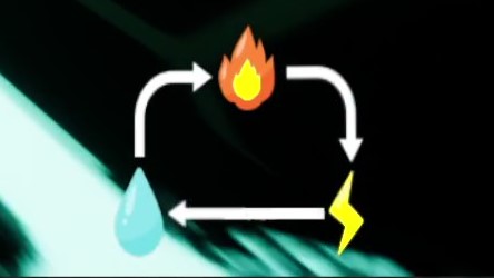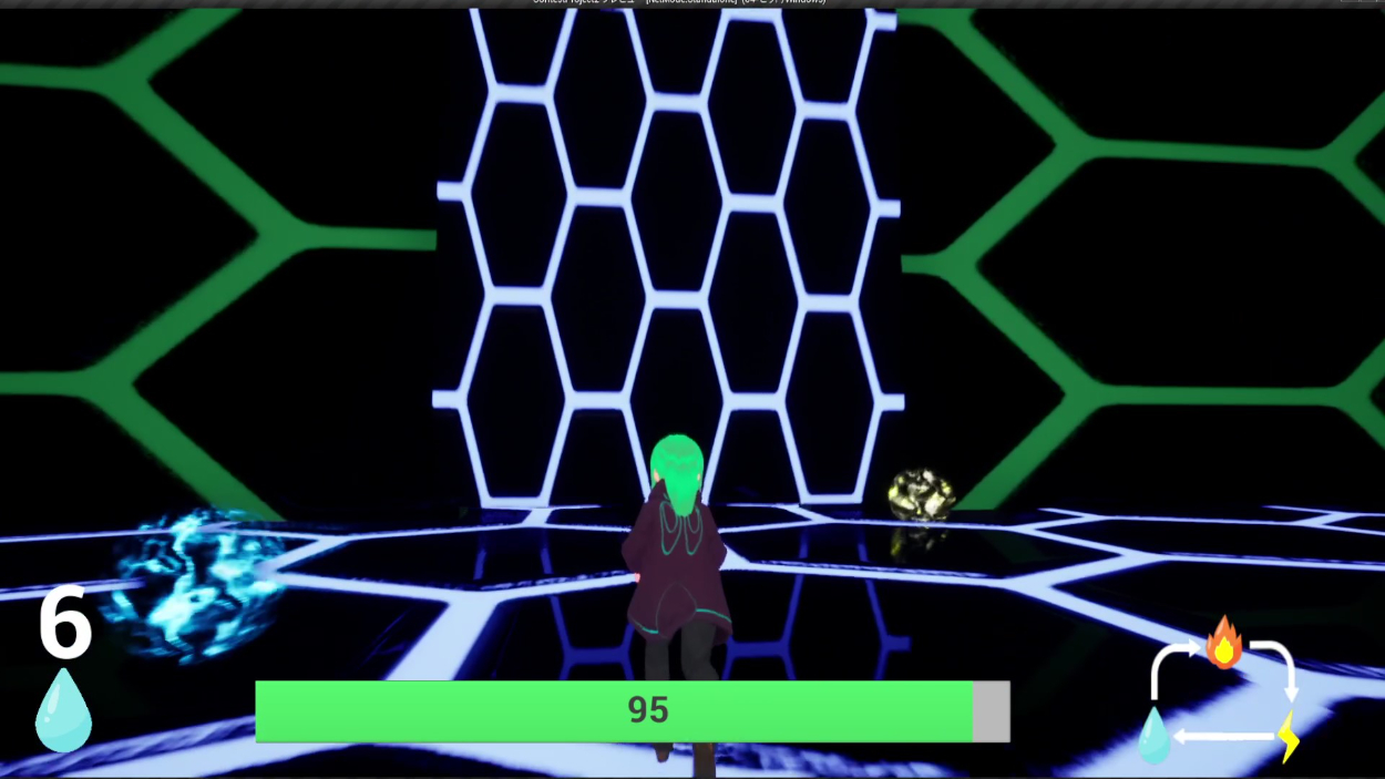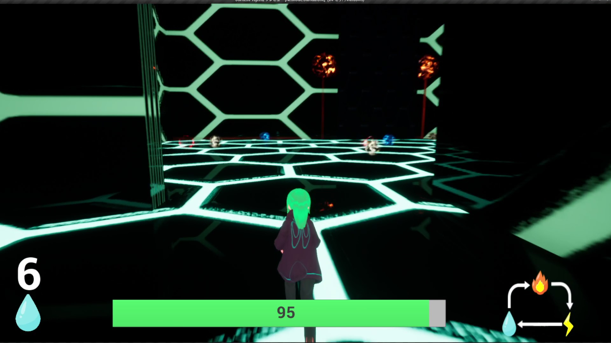 また相性を使用したギミックも、炎の動く弾を水の弾で壊して進むというしかけも作りました