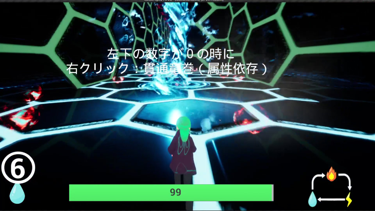 属性変化をすることで、飛ばしてくる弾の属性も変化し、相性も変わるという感じにしました