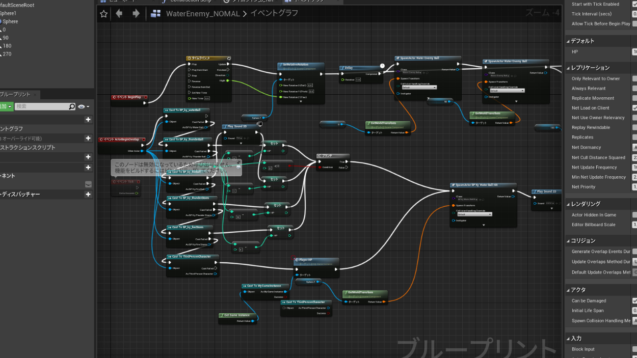 今回は動きなどは全てブループリントで作ったため、構造が少し複雑になってしまいました…
