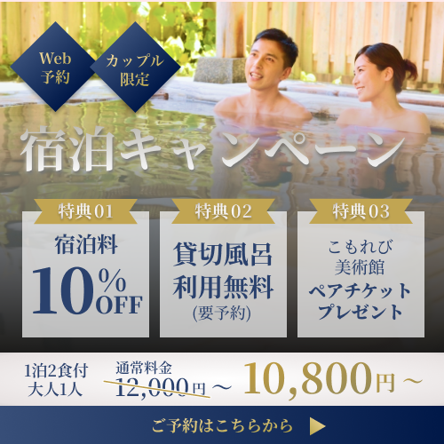 対象:Web予約・カップル限定1泊2食付の通常料金:大人一人12,000円〜