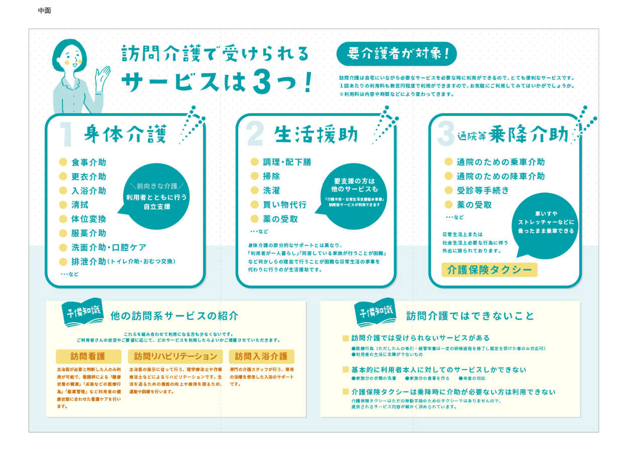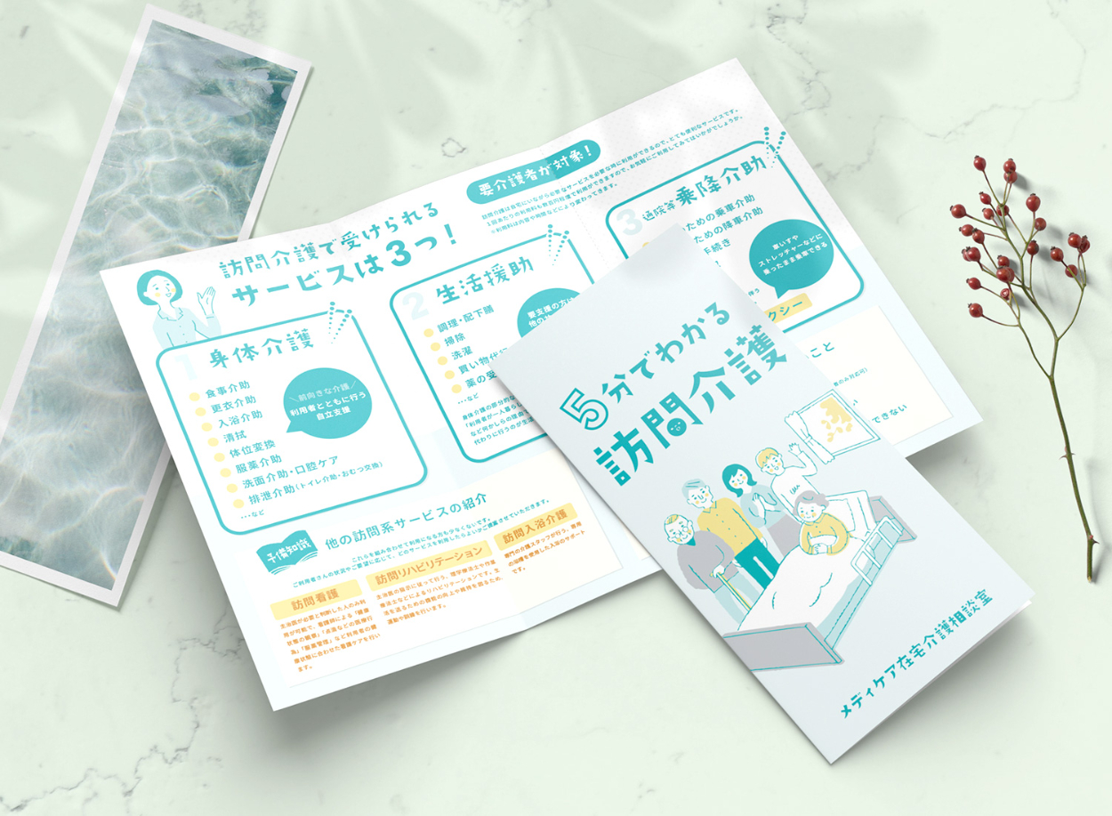 【想定】在宅での訪問介護を説明するサービス案内のパンフレット