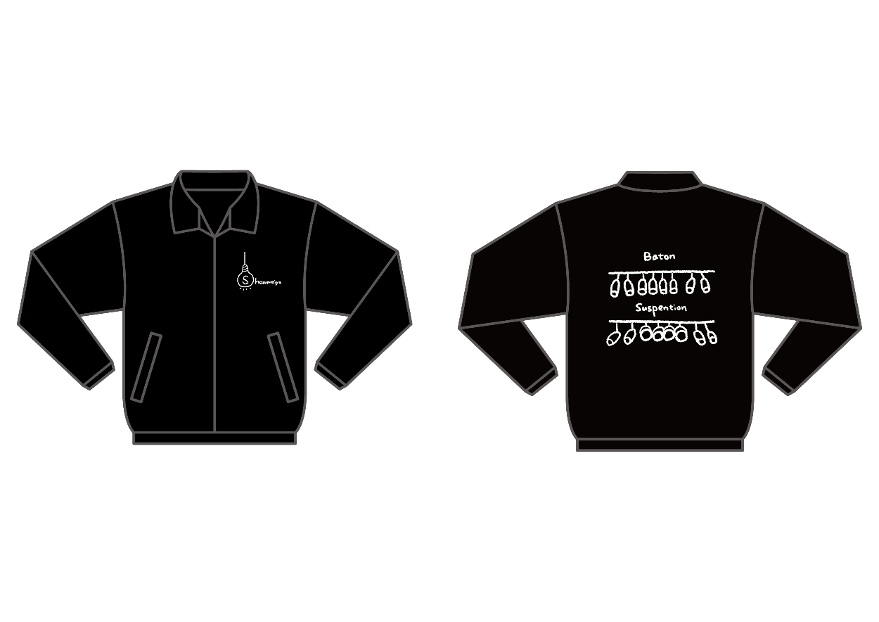 照明屋20ジャケット tmtm/MOMOKA NAGATOMI 学生 OVERVIEW 照明屋(サークル)の2020年度のジャケットをデザインしました。 YEAR 2020 照明屋ジャケットのデザインを担当しました。前面は電球をモチーフとした照明屋ロゴを制作し、背面はサスペンションライトとバトンライトモチーフで制作しました。