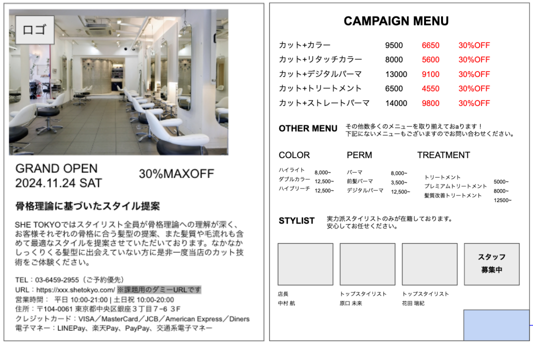 【課題制作】フライヤー制作(美容室新規オープン)