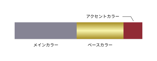 高級感、特別感、大人っぽいといったイメージを出すために、紫色を採用しました。その中でもおしゃれな雰囲気にしたかったため、くすんだようなラベンダーカラーを採用しました。ベースカラーやアクセントカラーにも高級感を持たせたかったためゴールドと、女性向けであることから赤系の中でもエンジのようなカラーを選択しました。