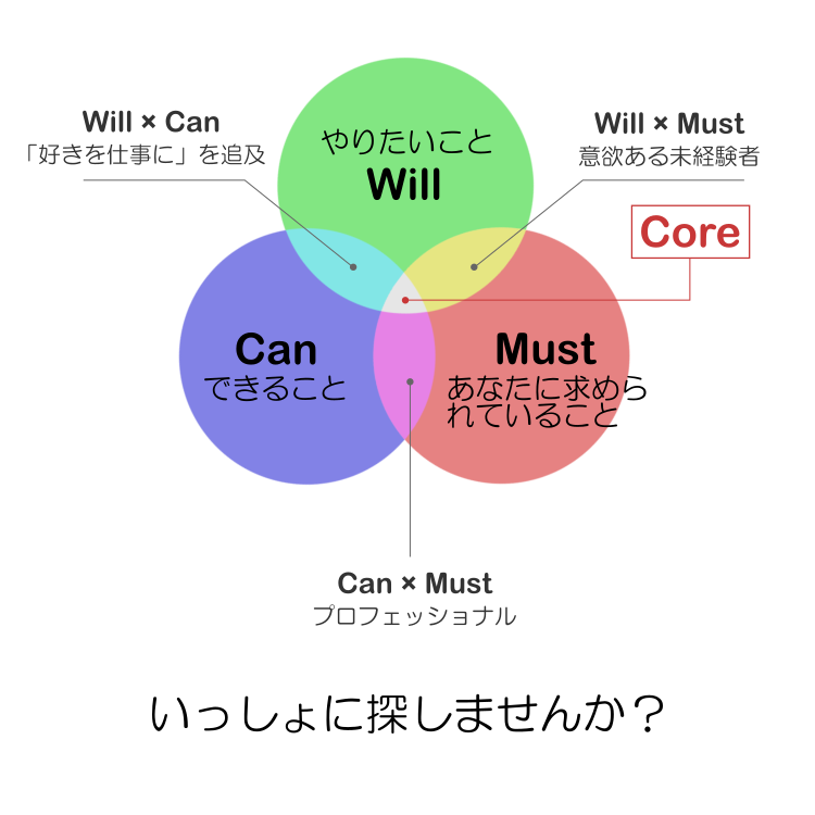 ・円が重なっている部分に無理に文字を入れず、図の外に説明を持ってくることによって、全体のイメージをすっきりさせた。