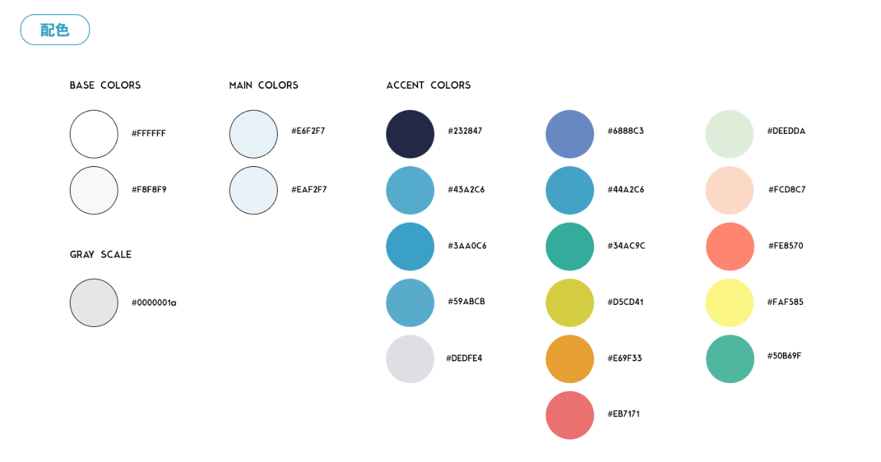 • 配色/タイポグラフィ/余白に関する分析(スタイルガイド)を行い、一定のルールに則ってデザインすることを学ぶ。
