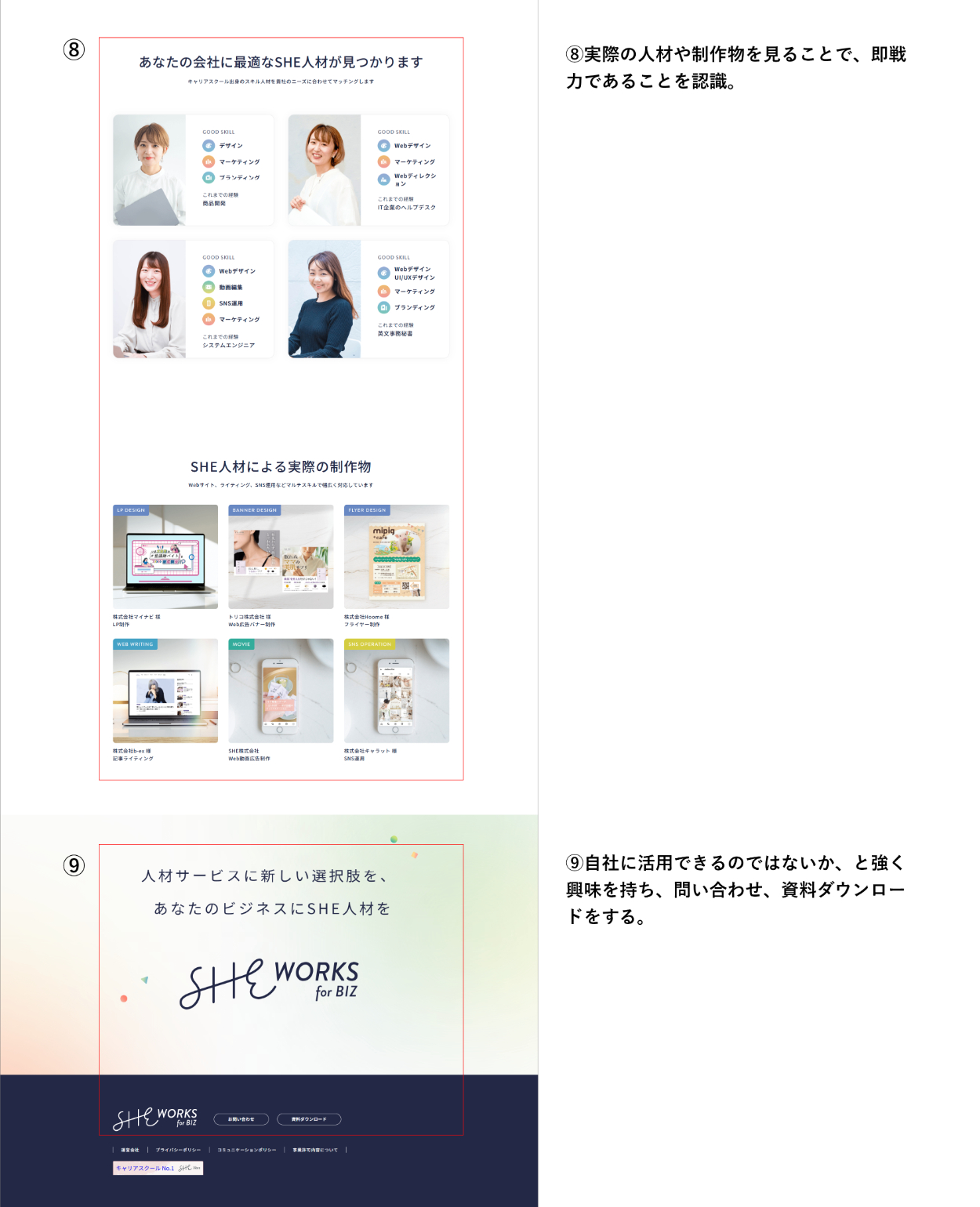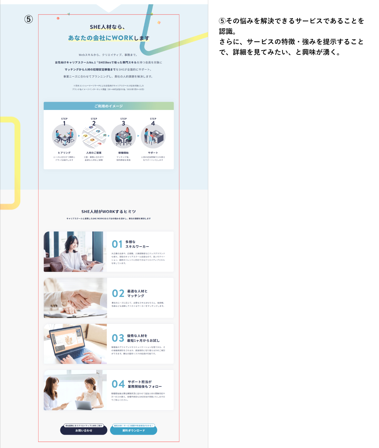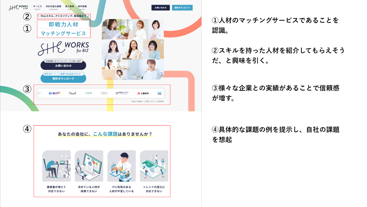 問い合わせや資料ダウンロードをしてもらい、人材マッチングにつなげたい。