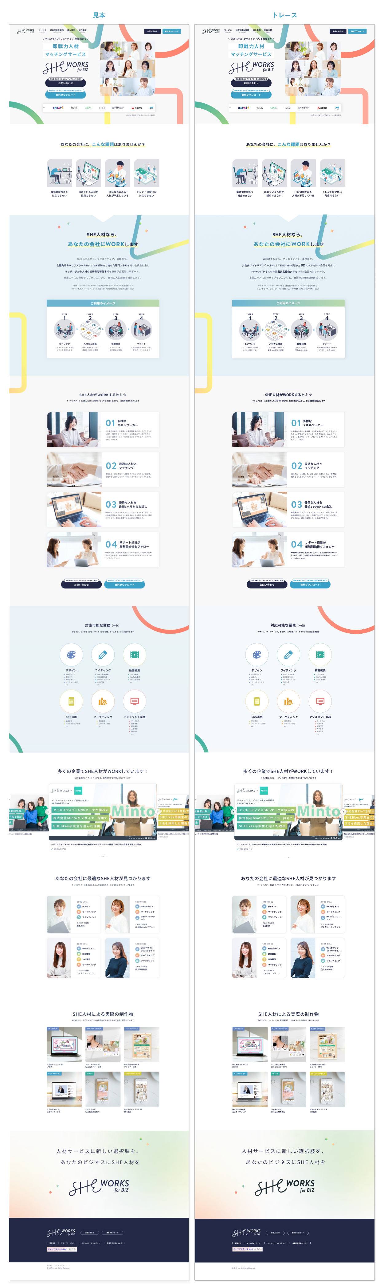 • フォントや写真、レイアウトなど文字間、フォントサイズ、要素同士の余白や角の丸みなど、細かい点もズレがないように気を付けながらトレースしました。