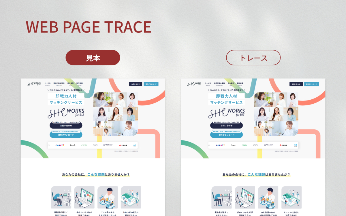 - フォントや写真、レイアウトなど文字間、フォントサイズ、要素同士の余白や角の丸みなど、細かい点もズレがないように気を付けながらトレースしました。