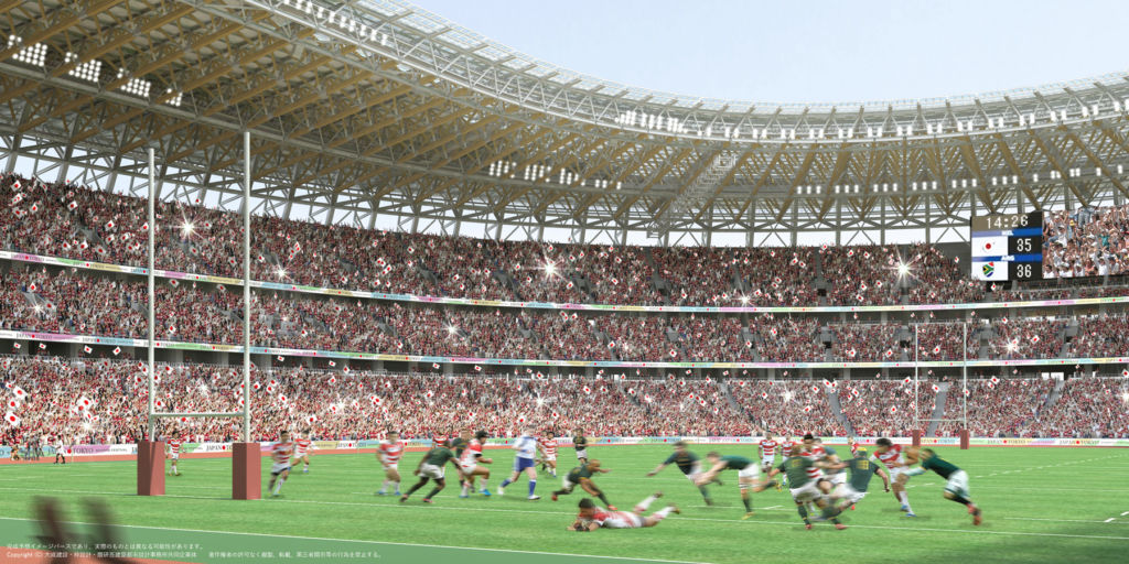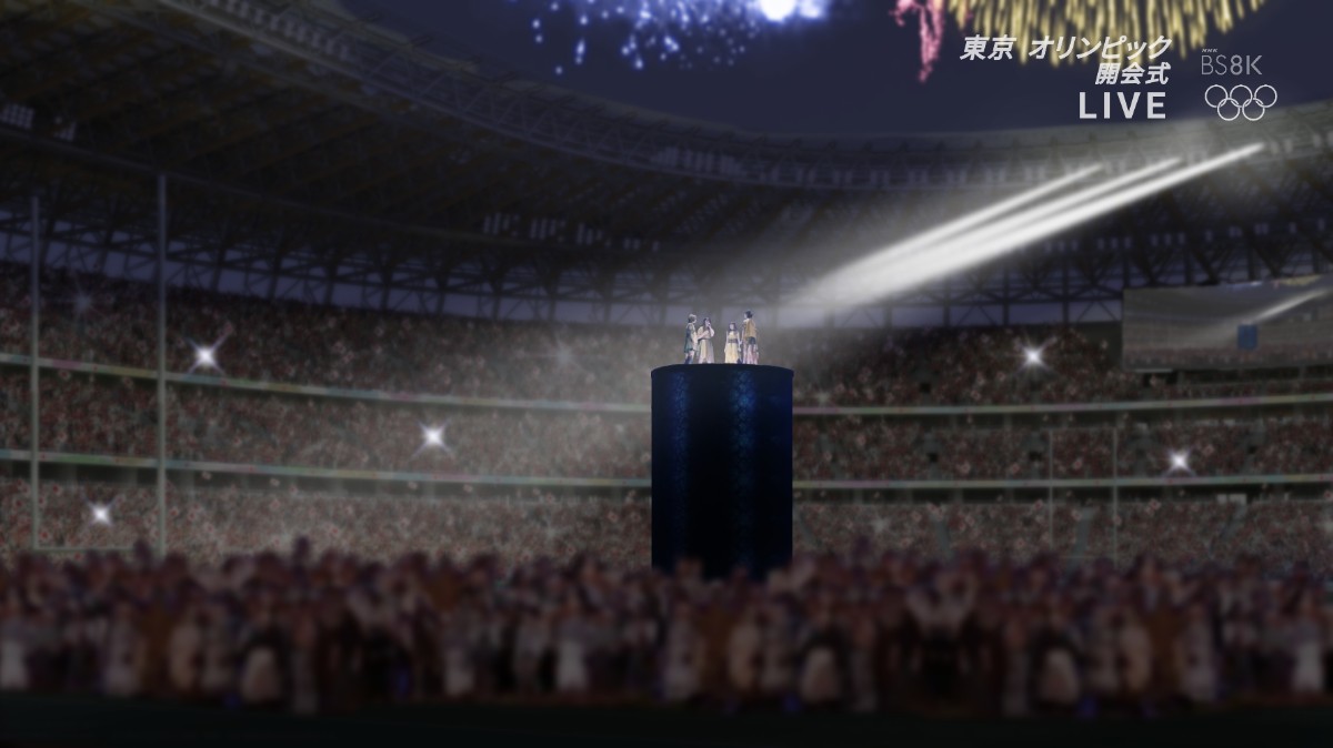 TOKYO 2020 Opening Ceremony 三河屋 Creator NHK BS8K2019.1ちなみに1枚目の元の画像はこちら。これに、昼夜逆転観客の追加ストロボのフラッシュを追加照明の光を追加ステージの追加電光掲示板の映像のハメコミ合成花火の追加を行った。