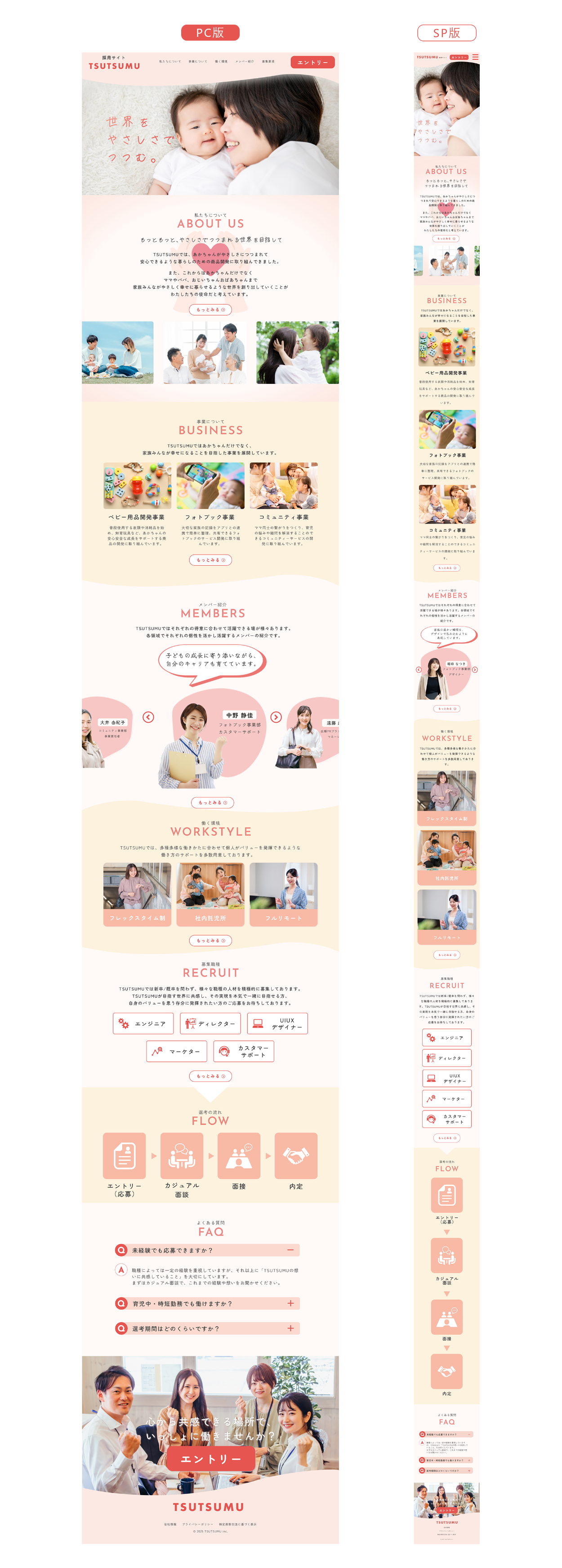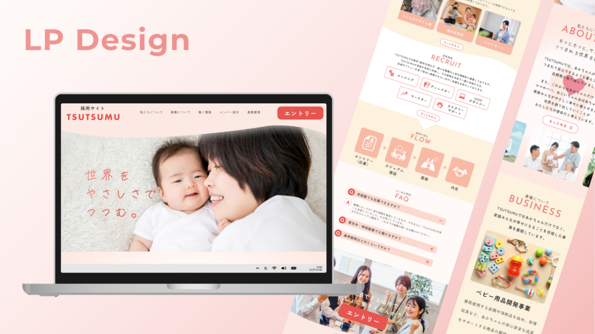 実案件を想定した演習プログラム「SHElikes PRO デザイナー」にて架空のWeb採用サイトの制作(情報設計/ワイヤーフレーム/デザインカンプ/コーディング(レスポンシブを含む)/サーバーアップ)に取り組みました。