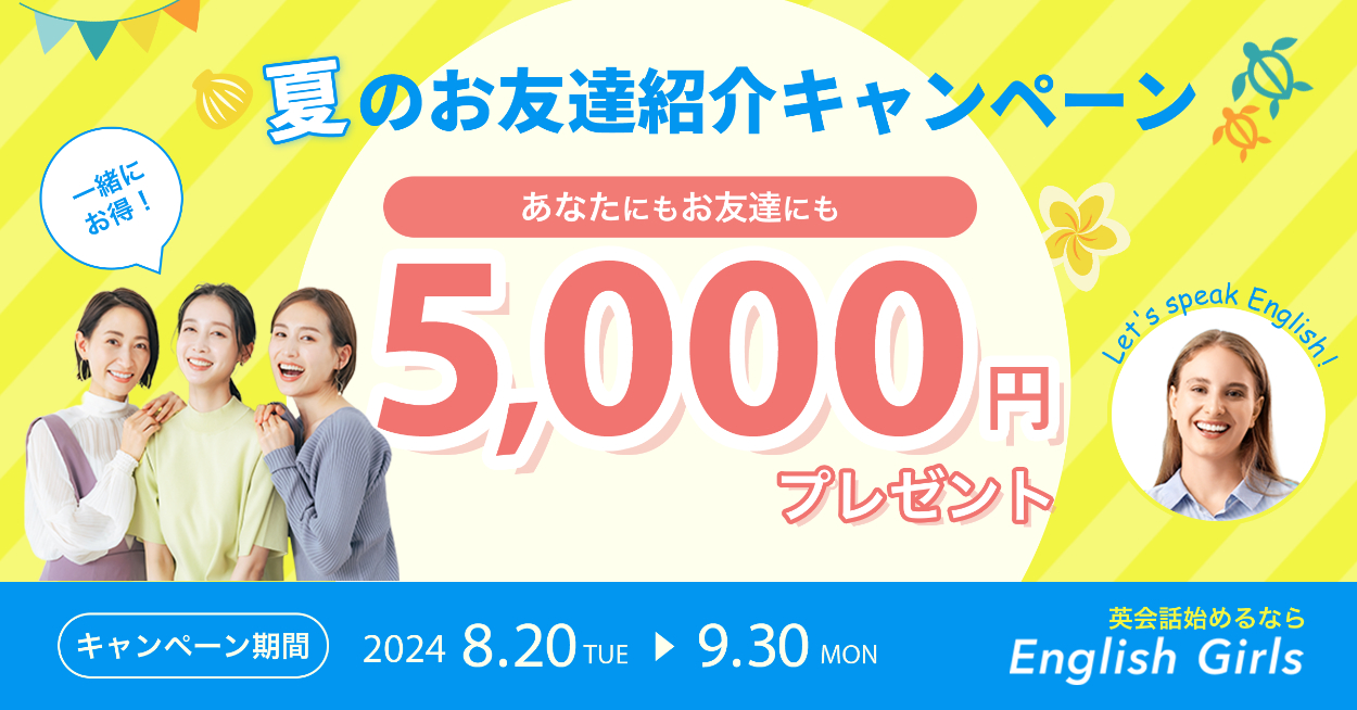 【SHElikes PROデザイナーコース実践課題】架空英会話スクールのX/Instagram掲載用バナー (20代女性をメインターゲットとする、お友達紹介キャンペーンのバナー制作)