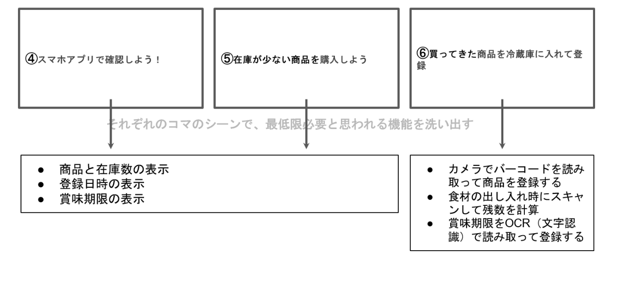 そして、今回のハッカソンで実装したい必要最小限の機能の洗い出しを行った