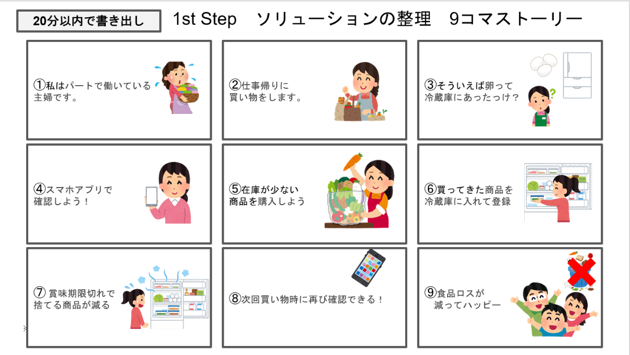 その後、ソリューションの流れを9コマの漫画にしてまとめた。