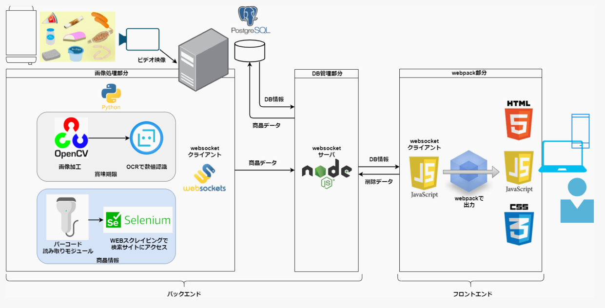 また、当初はpyzbarというライブラリを使って読み込んだJANコード(バーコードに入っている12桁の数字列で商品情報を示すことができる)から商品名を取得する過程で、外部API(YahooAPIとか楽天APIとか)を使う予定だった。