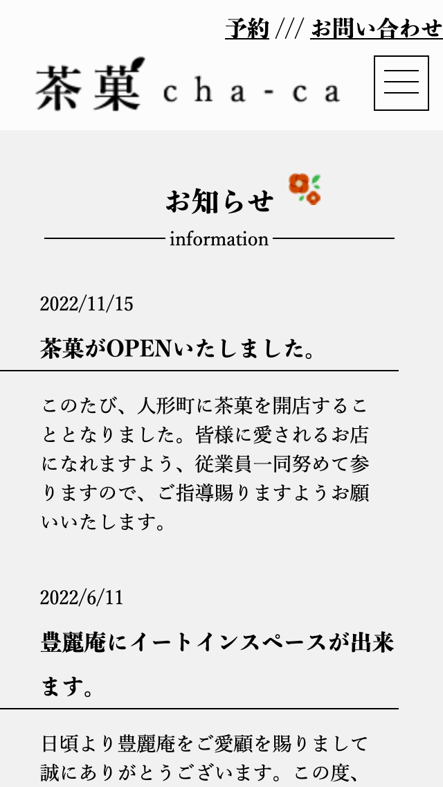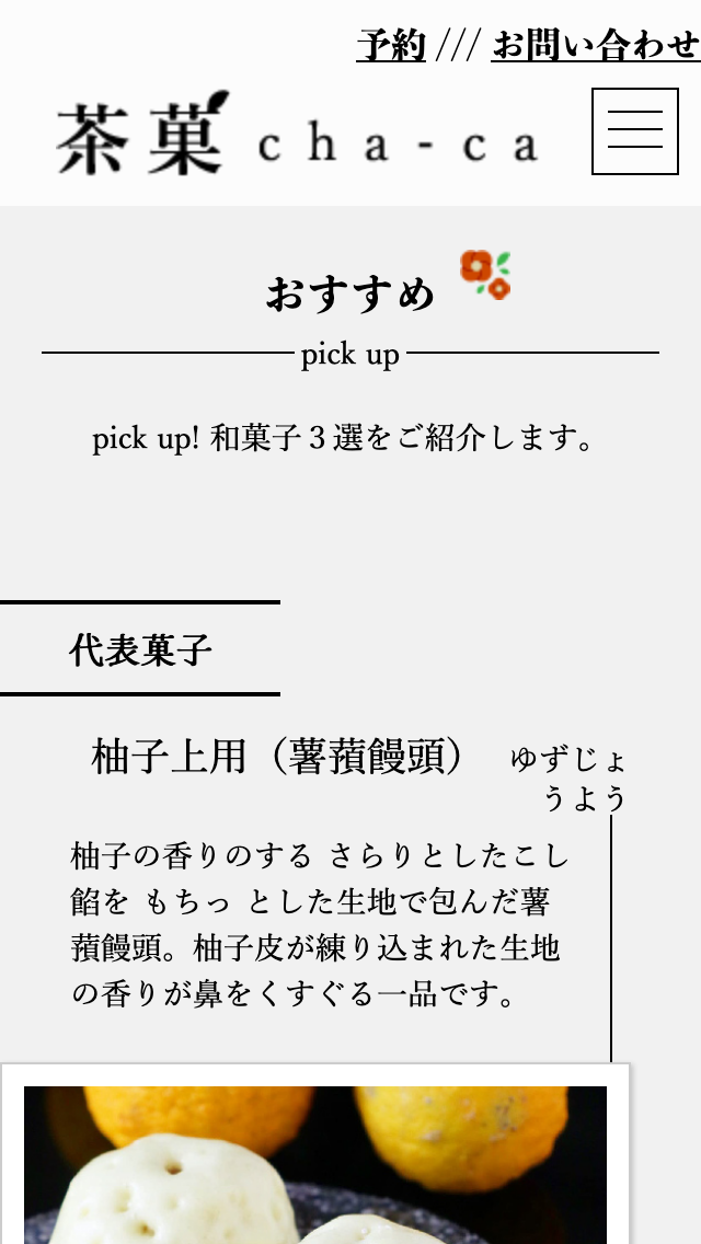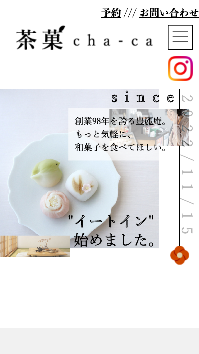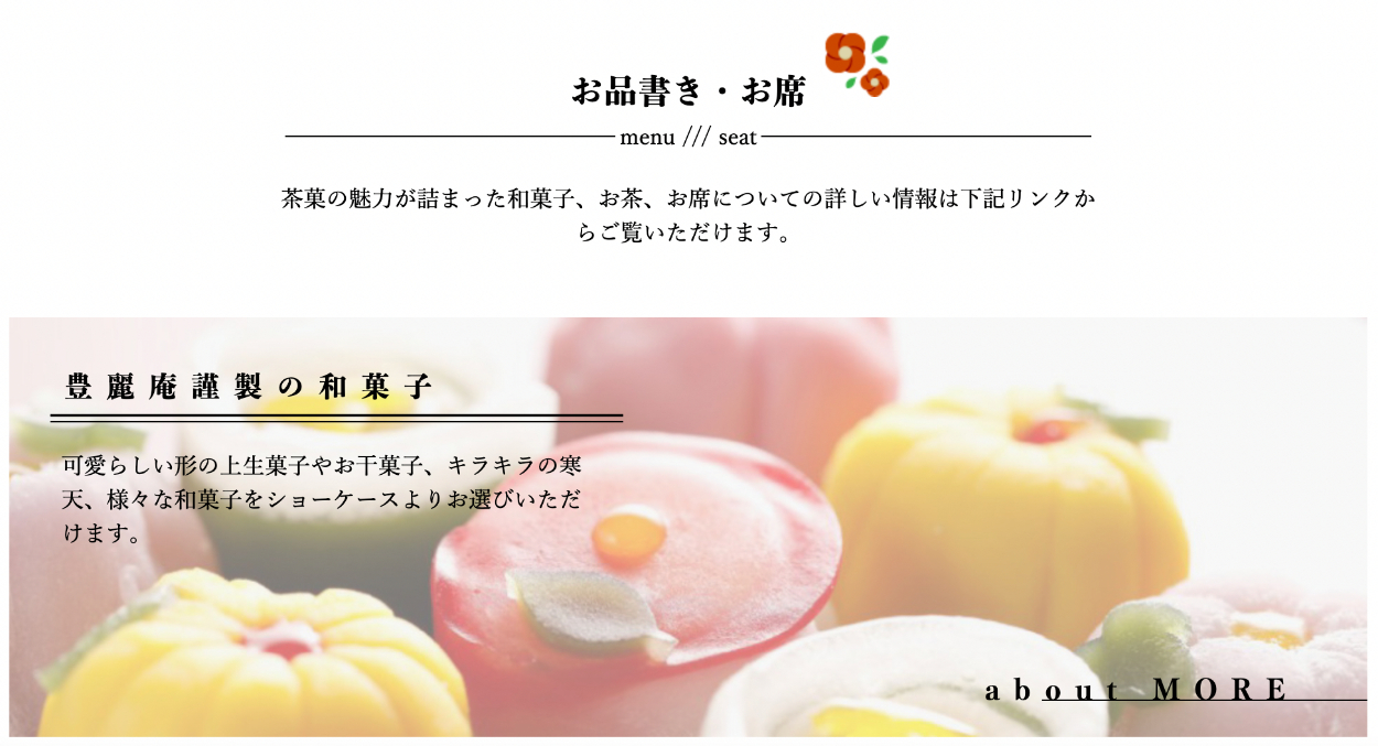 職業訓練校に入校してから2ヶ月半後に作成した和菓子屋のイートインスペースの架空コーポレートサイトです。