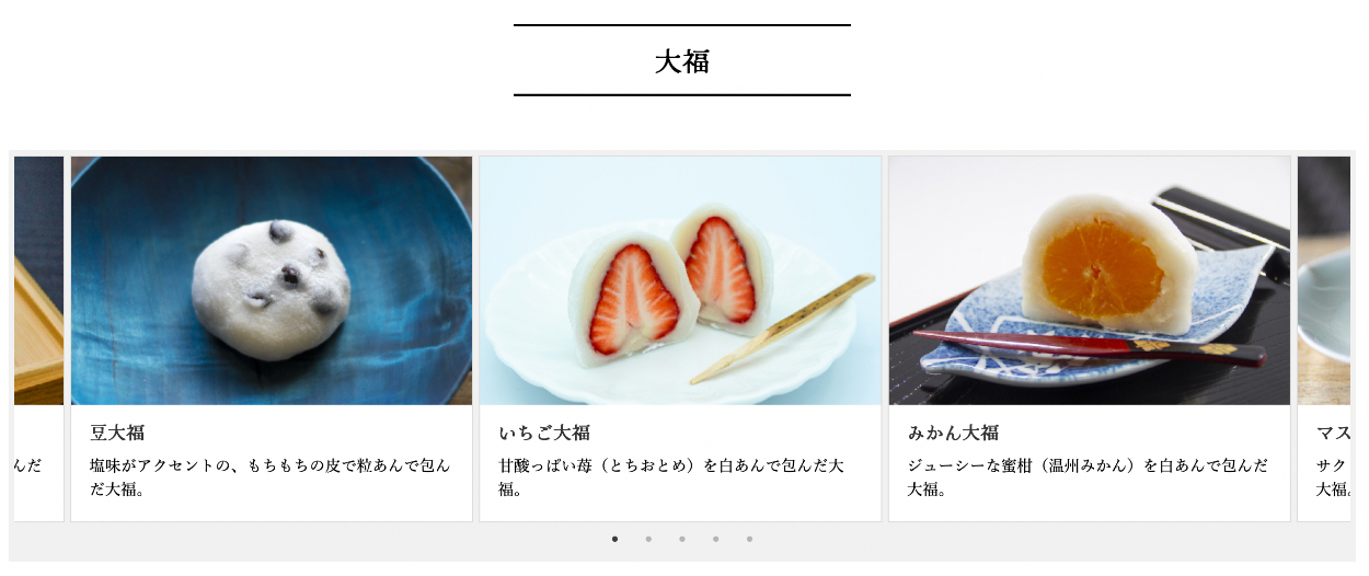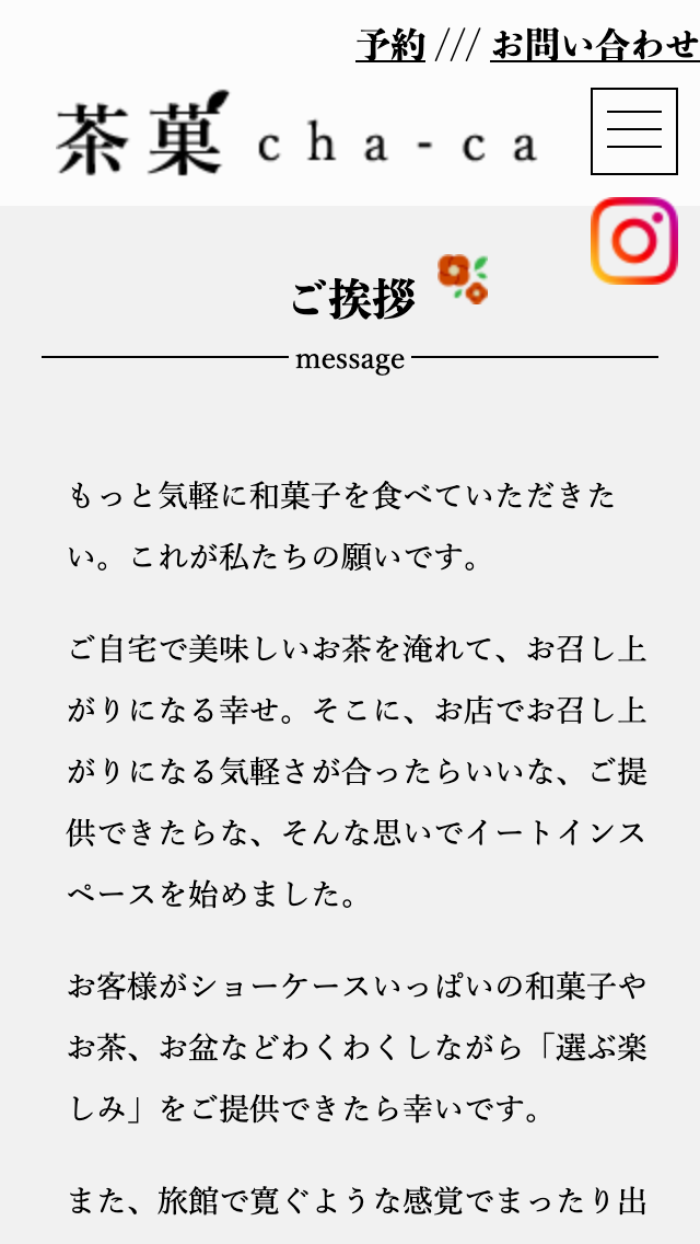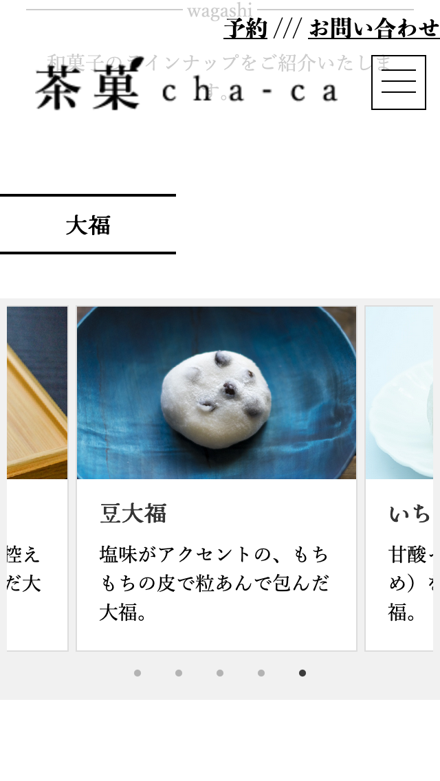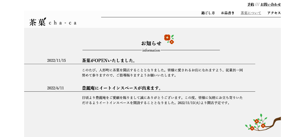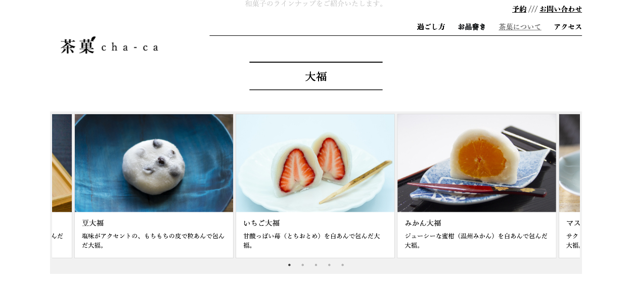 職業訓練校に入校してから2ヶ月半後に作成した和菓子屋のイートインスペースの架空コーポレートサイトです。