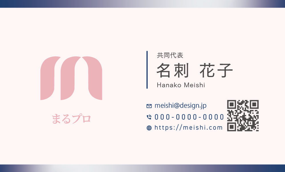 名刺デザイン 制作 nosono web・グラフィックデザイナー OVERVIEW まるプロ様の名刺デザインを作成させていただきました。 ロゴのピンクに合うように、ネイビーの帯はグラデーションにすることで柔らい雰囲気を出し、女性らしいデザインにしました。