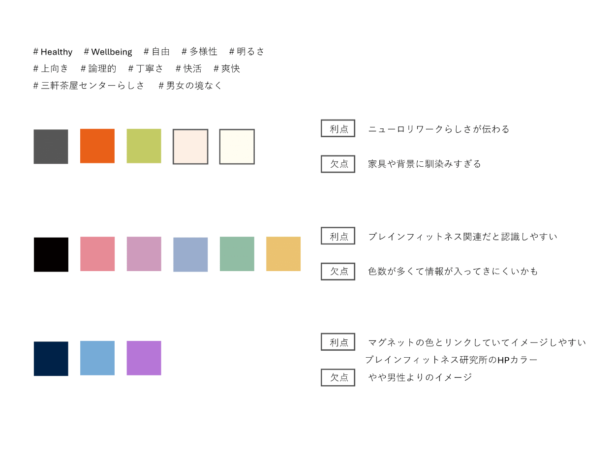 ③ブレインフィットネス研究所のHPカラー、およびニューロリワーク三軒茶屋センターの施設内で使用されているマグネットのカラー