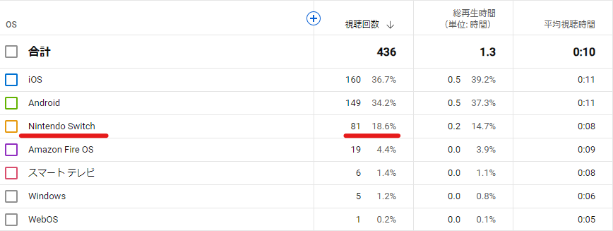 ⇒テレビ・Nintendo Switchからの視聴はYouTubeならではで、占める割合も大きい