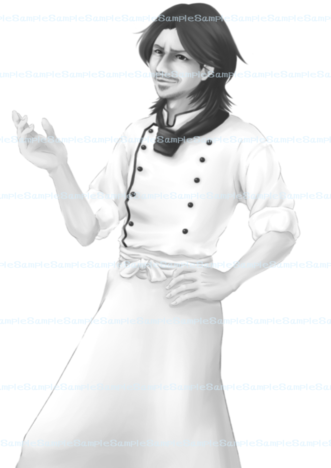 『ジョニー・デップみたいなオジサマショコラティエ』とのデザイン、厚塗り風のモノクロ挿絵の注文でした。