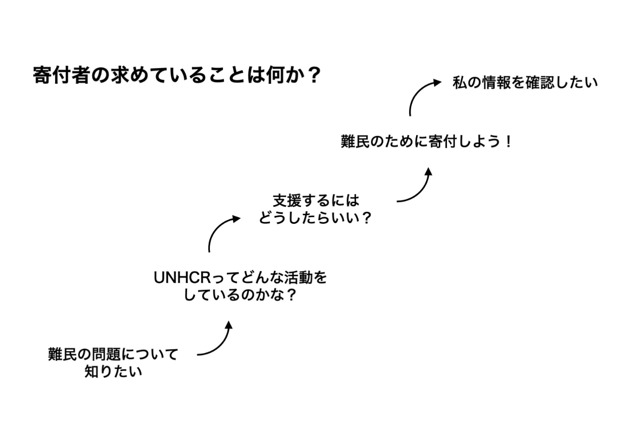 まず寄付者はどのように難民について関心をもち、そして最終的に寄付へと繋がるのかを分析しました。