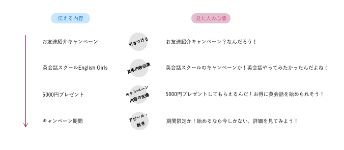 「お友達紹介キャンペーン」で惹きつけて、Z型で情報を伝達するように配置をしました。