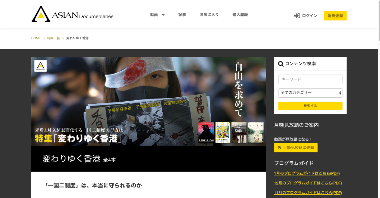 アジアのドキュメンタリー映像の配信サイトを作りたいということで依頼を受けて作成しました。