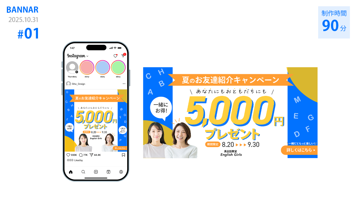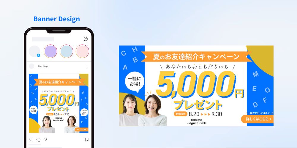 オレンジ×ブルーのメリハリある配色で、インパクトのあるバナーです😀