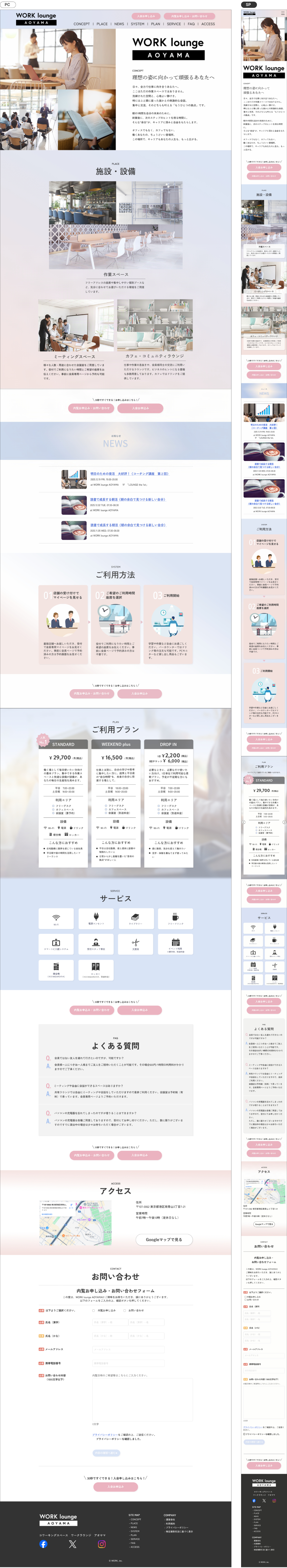 【架空】WORK lounge AOYAMA様の LP制作(PC/SPデザイン)