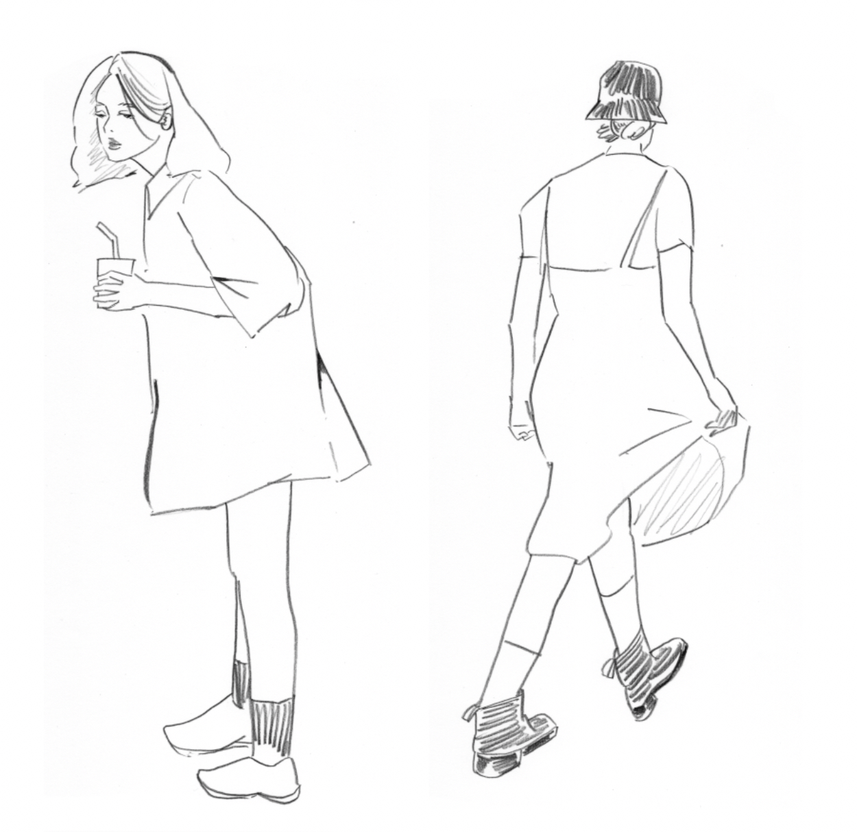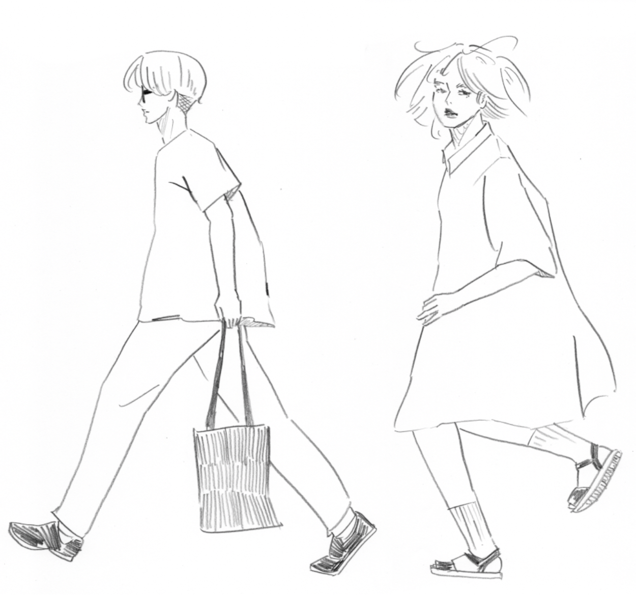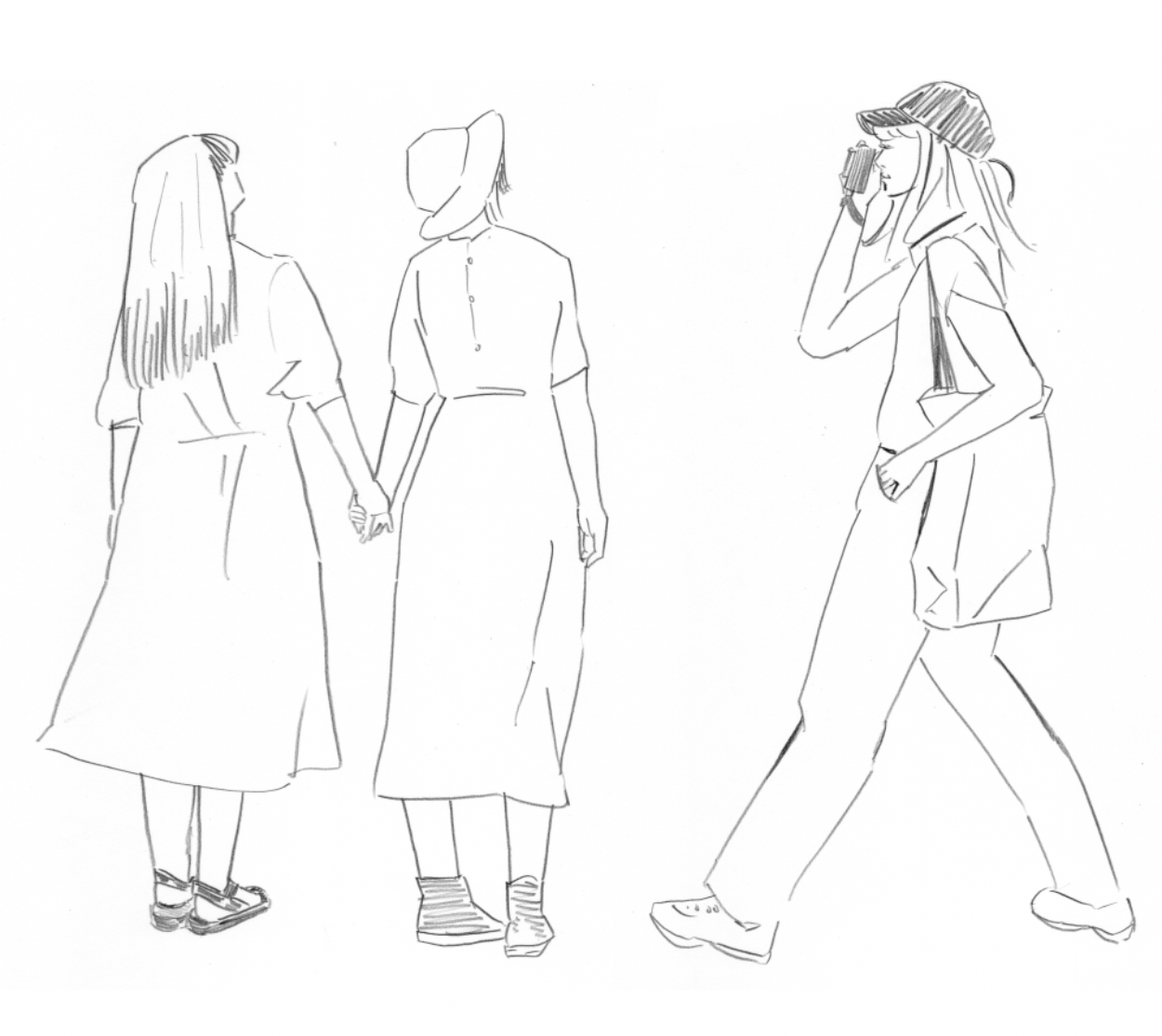 イベントで歩き回っている人物の絵が何パターンかほしいとの依頼だったので街に出て人物の写真を撮りイラストに書き起こした。