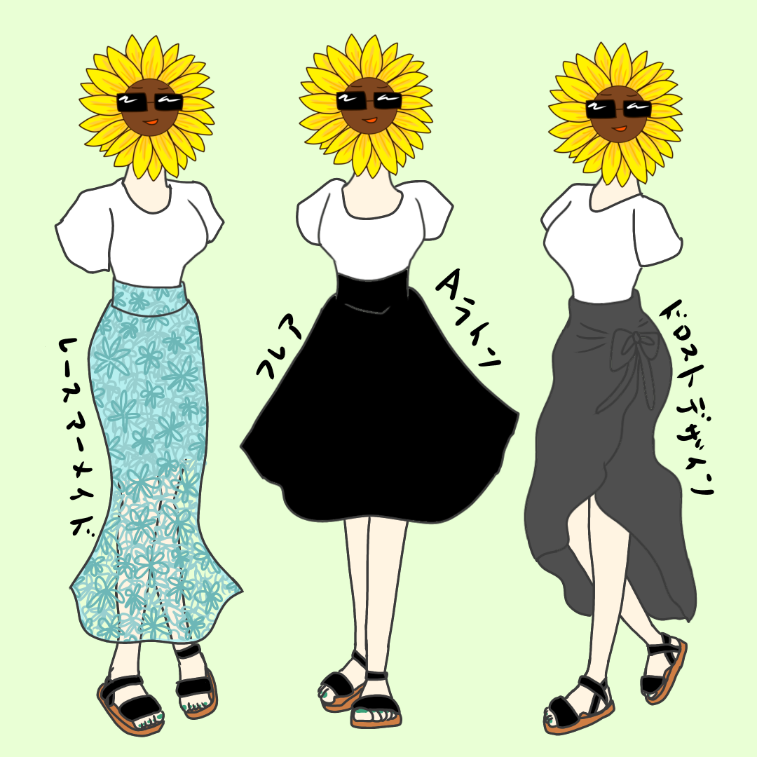 →手持ちスカート、書いたのが8月だったので顔をひまわりにしました