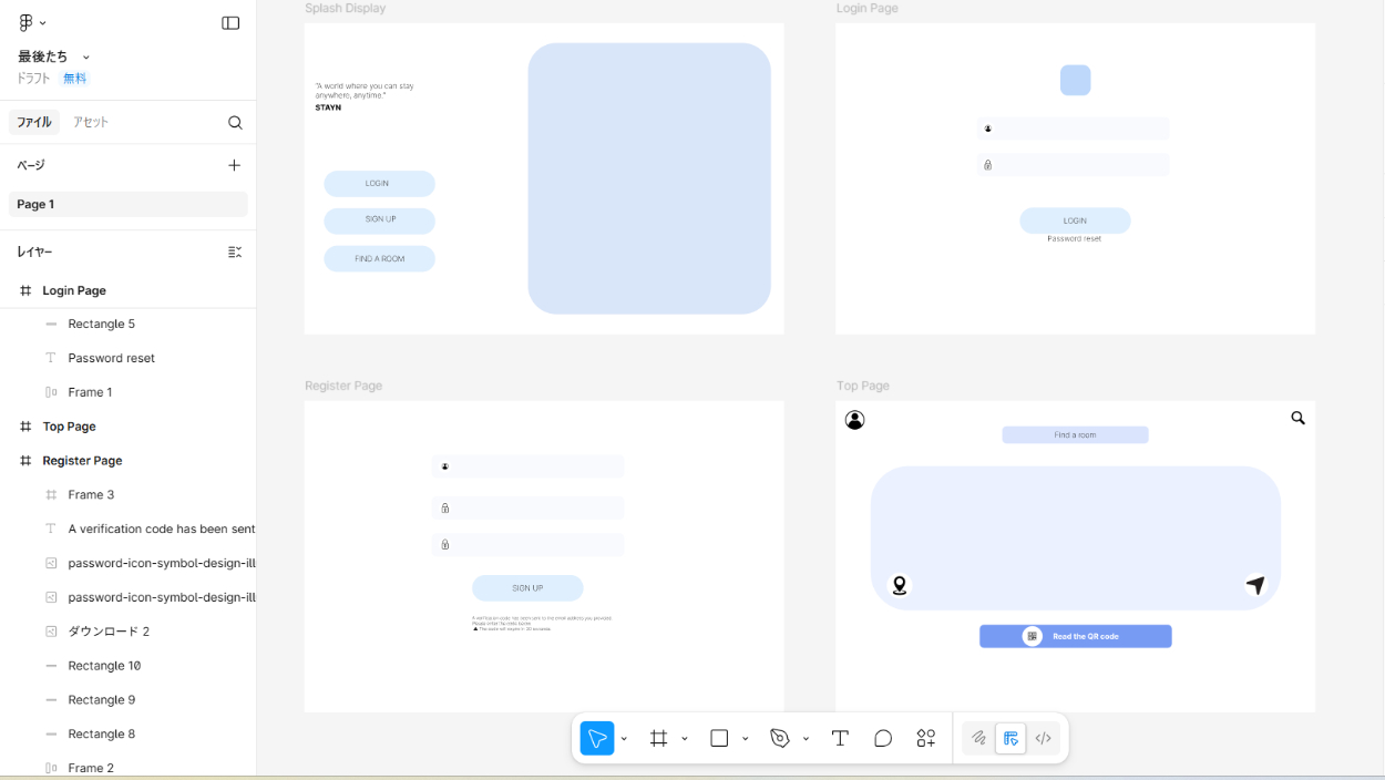 Figmaを使って、STAYN(ステイン)というWEBアプリの画面遷移図(screen transition flow)を作成しています。 ユーザーがスプラッシュ画面からログイン・新規登録・トップページへスムーズに進めるよう、画面のつながりをわかりやすく設計しています。