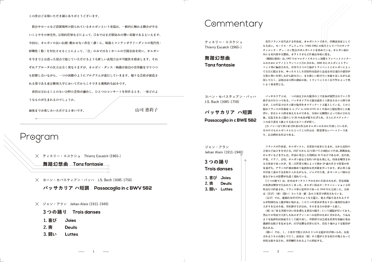 音楽学部オルガン科の方の公開講評リサイタルのフライヤーとリーフレットを制作。国際芸術創造研究科の方を通してやり取りを行った。