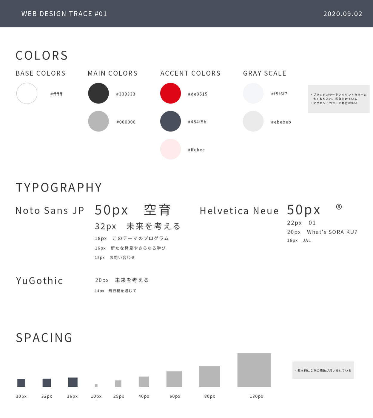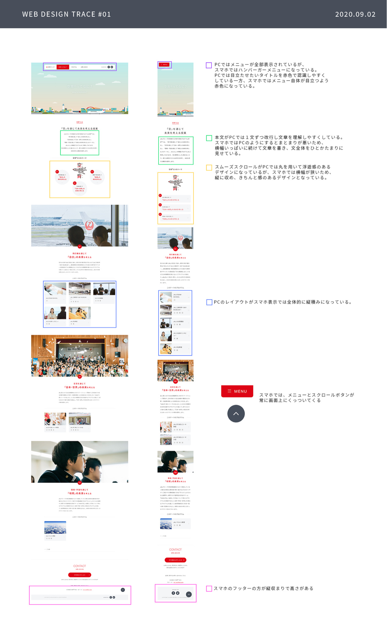SHElikes MULTI CURIATOR COURSEの課題でWebページトレースに取り組みました。Webページのビジュアルデザイン・デザインルール・デバイスによるレイアウトの変化を分析し、トレースと結果をまとめました。