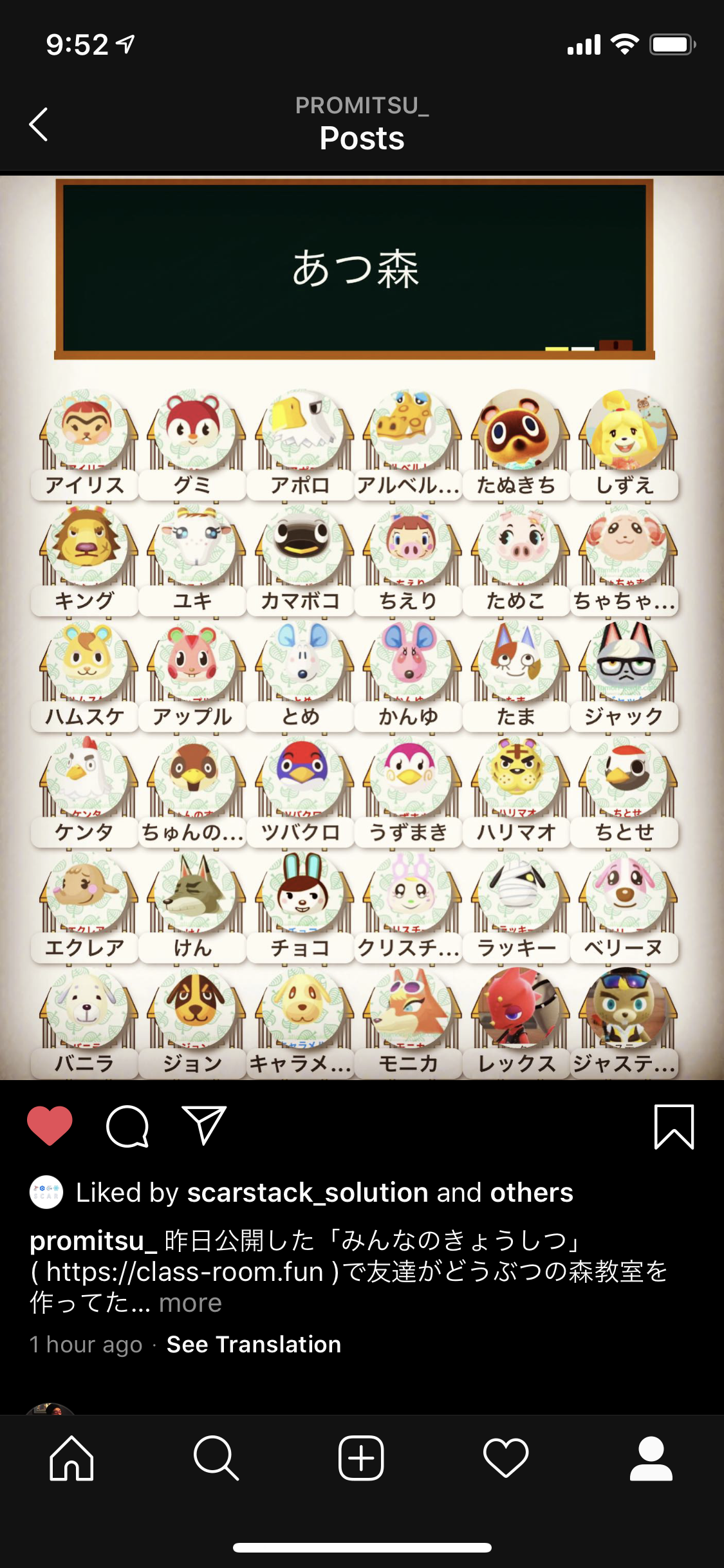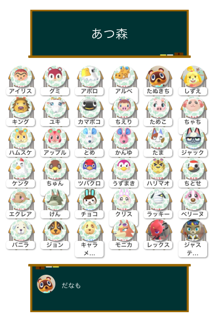 また、「記念撮影」機能で作った教室の画像を作成・ダウンロードしたり、各種SNSに手軽にシェアすることが出来ます。(写真は友人が作った「あつまれ どうぶつの森」のキャラクターが集まる教室です)
