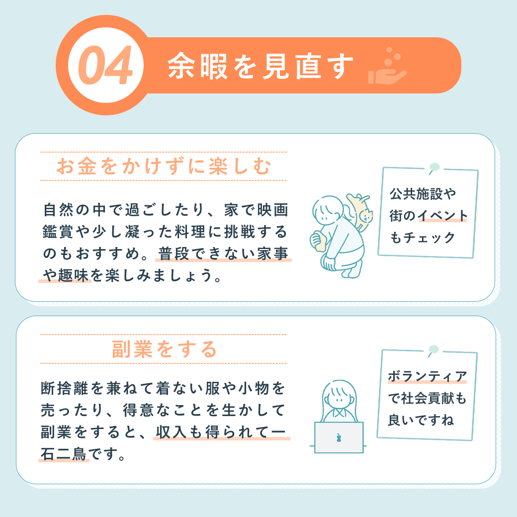 ・一時的に危機に陥った家計を立て直すということで、短期で結果が出て気軽にできる内 容にしました。