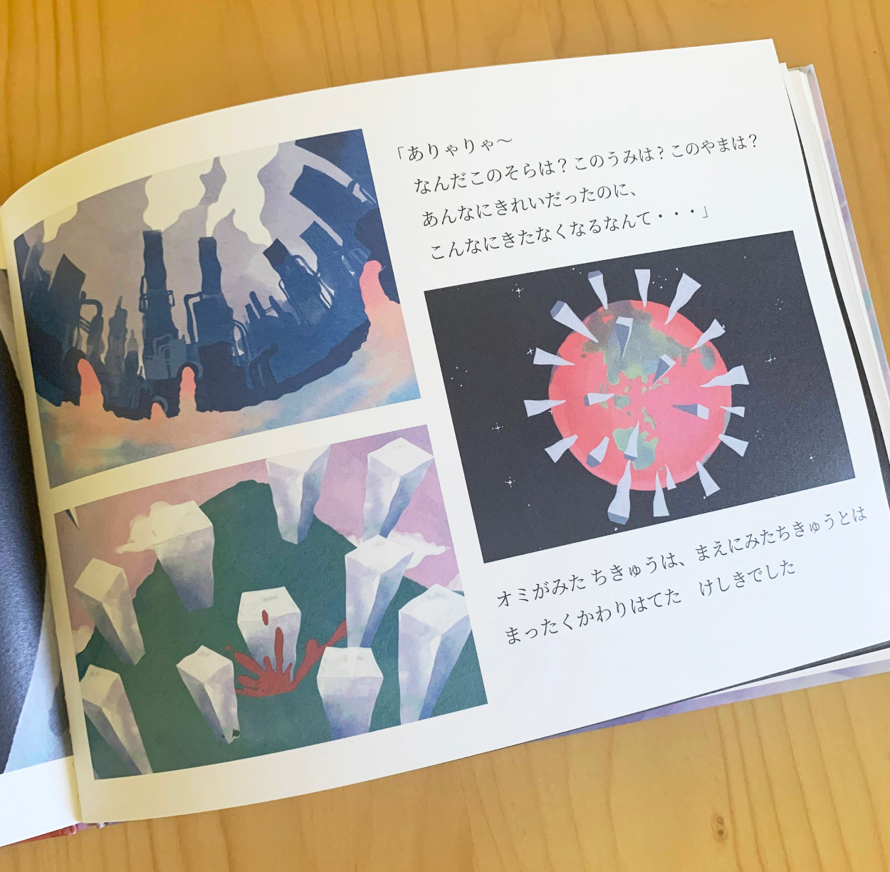 海に漂うプラスチックごみが、時間を経て細かくなってマイクロプラスチックとなり、そのごみが人類に与える影響というものを、水彩画の可愛らしいタッチのアニメーションで描きました。