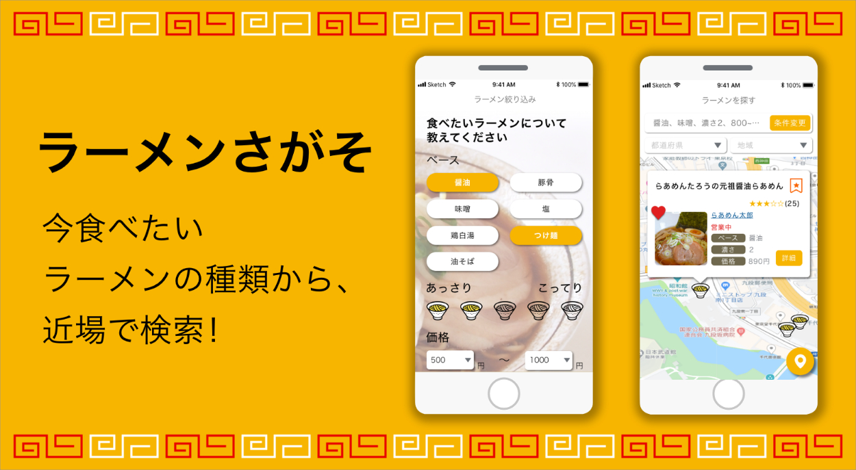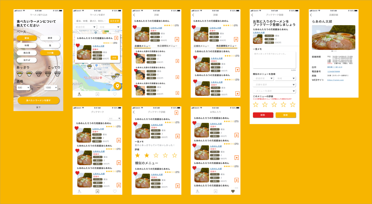 [自主開発][UIUX]今食べたい種類から近場のラーメン屋さんを探せるアプリUI作成