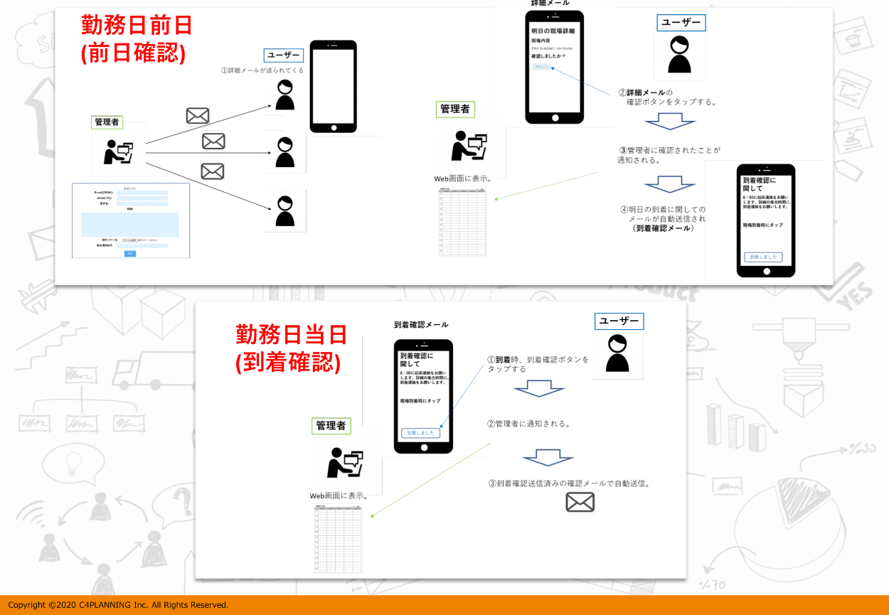 ・業務現場への登録スタッフ到着などの確認を管理画面上でマネジメント