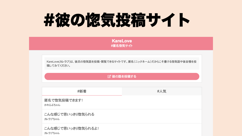Twitterで惚気垢という彼氏についてのつぶやき専用のアカウントが多くみられたため、アカウントを作るまではいかないけども、惚気たい人は多いのではないかと思い、匿名で気軽に投稿できるサービスとして作りました。