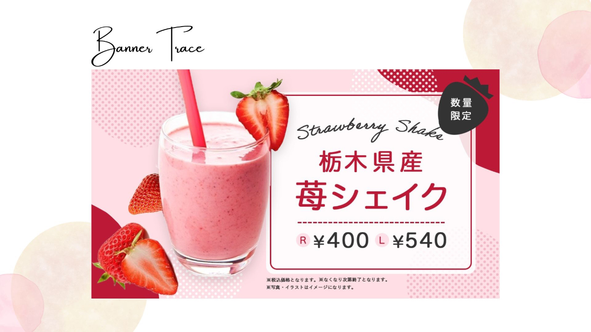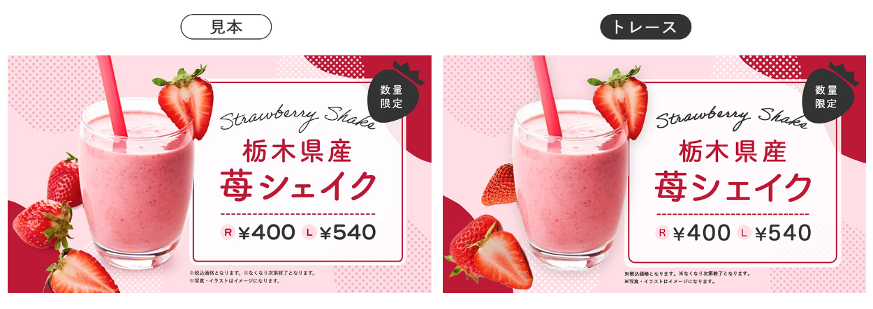 ◎見本バナーと同じような苺の素材写真を探しトーン調整を行い再現しました。