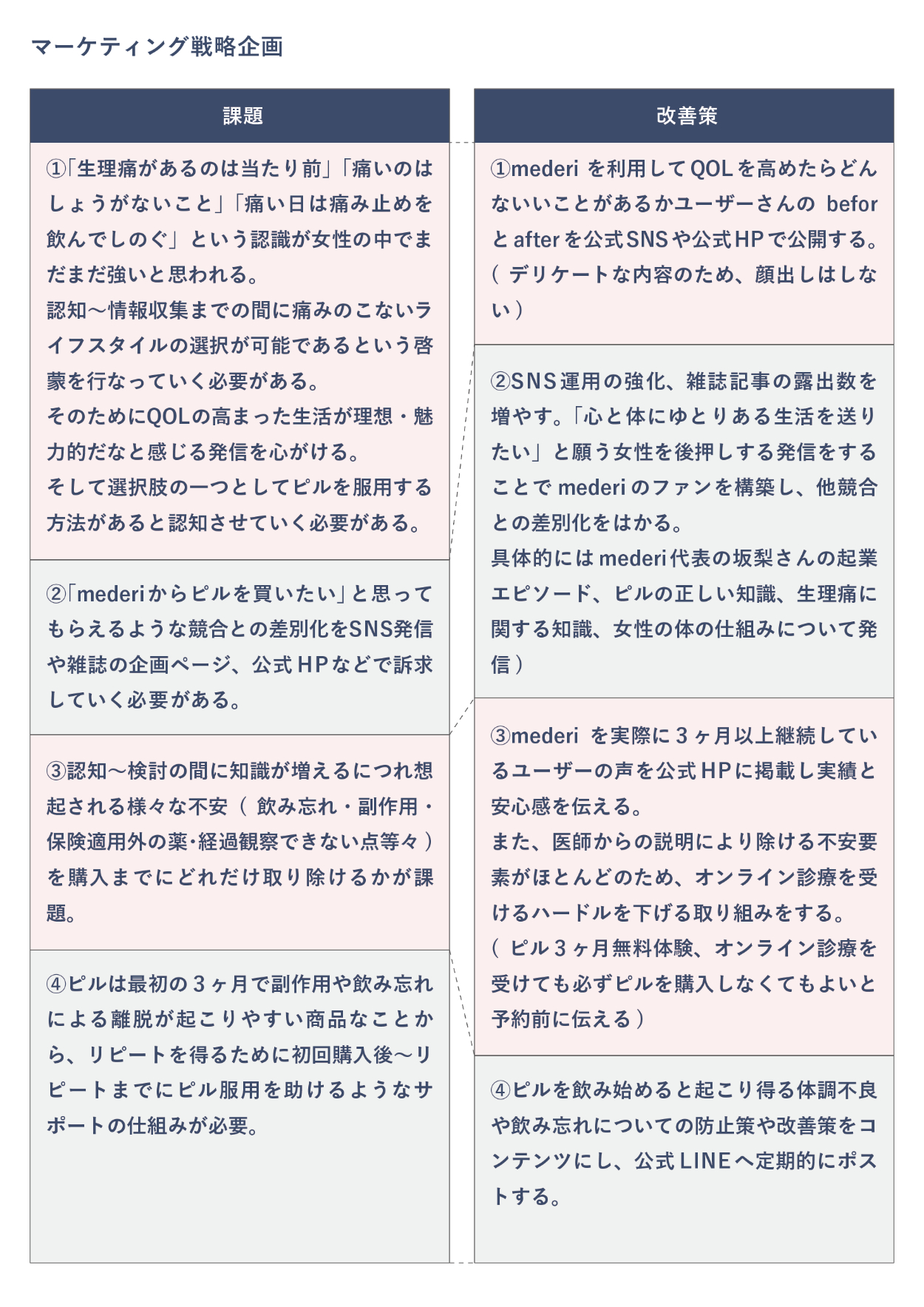 【コンペ提出物】mederi株式会社様『mederi pill』 マーケティング戦略企画