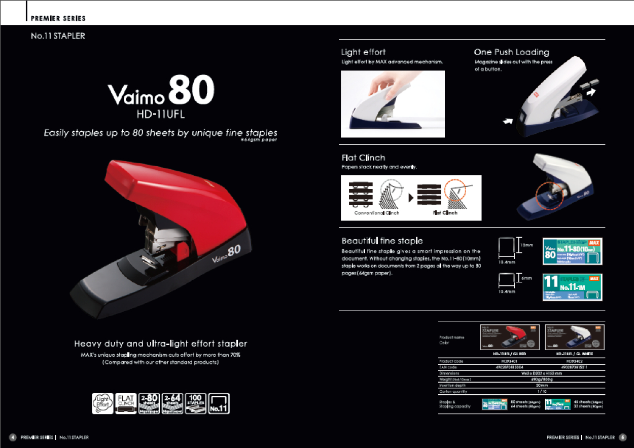 欧州向けの文具専用ホームページ。HP 制作会社と協力して作成。仕様検討~ベースとなるコーディングの作業まで制作会社で仕上げ、時間と費用の関係から、動作確認・テストやリリースは社内のシステム部と連携し進めた。100 画像以上あるHP 内のグラフィックや画像は自身が中心となり作成した。マックスの海外向けのサイトは存在するものの長い間メンテナンスされておらず、かなり古い印象であった。今回のブランディングを機に一新させた。