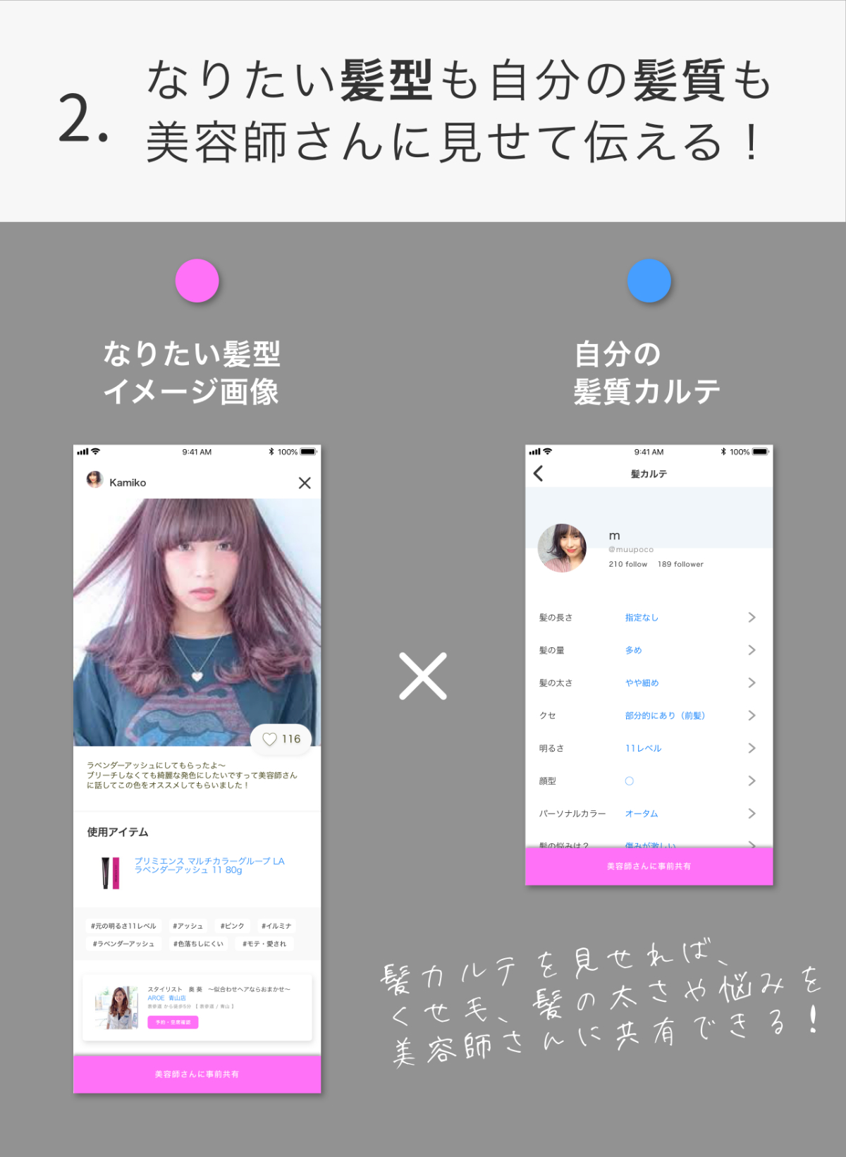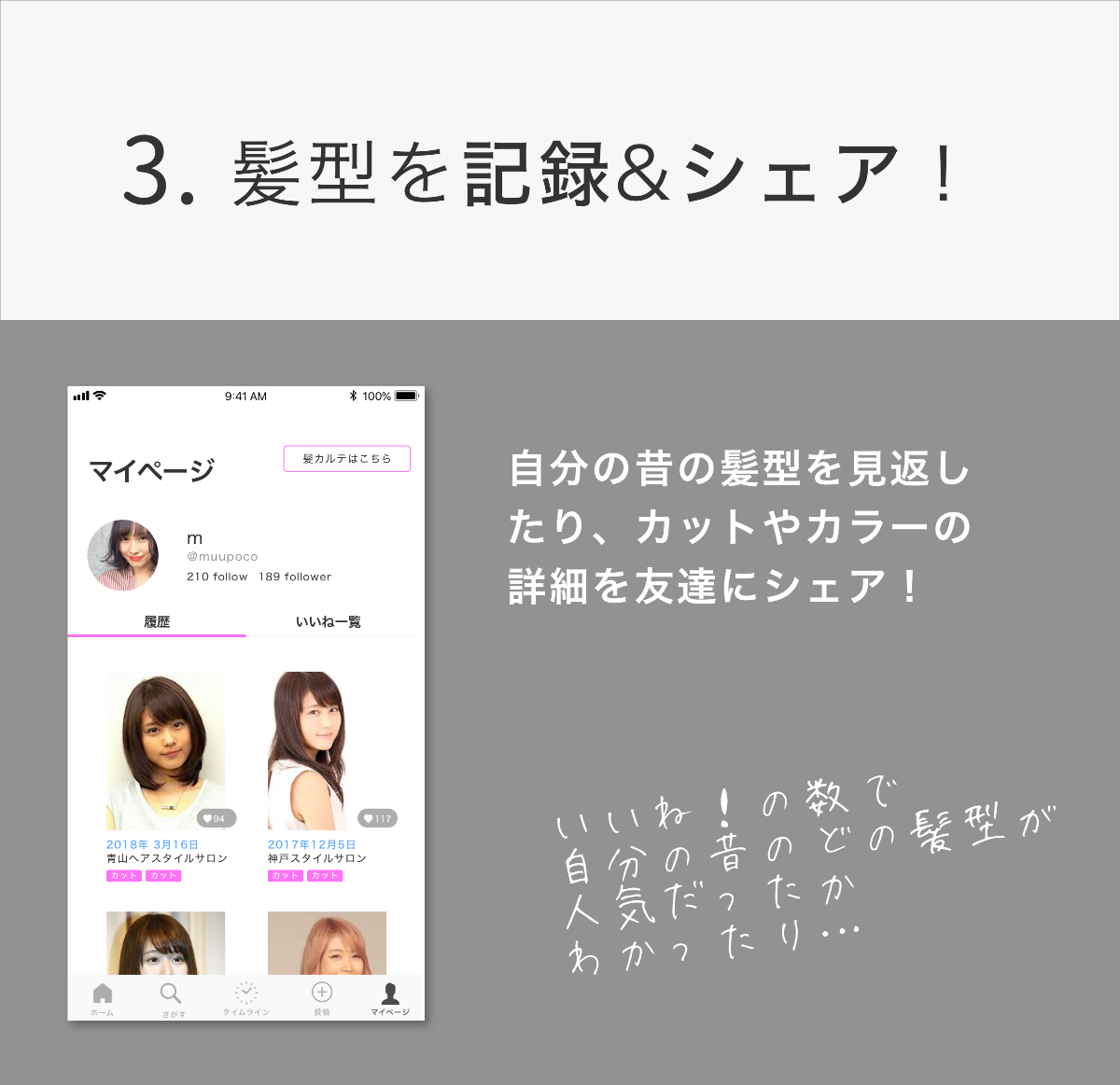 ・新しい髪型を記録、シェアする