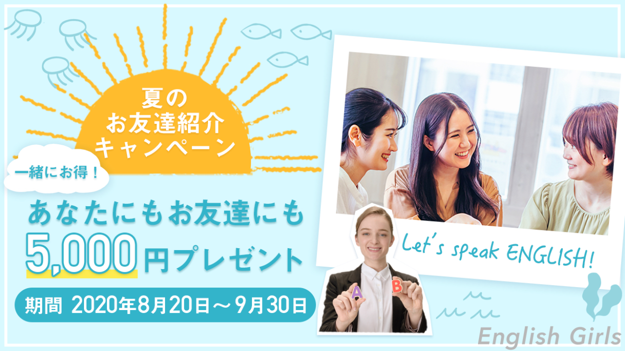 <文言>一緒にお得!|夏のお友達紹介キャンペーン|あなたにもお友達にも5,000円プレゼント|期間:2020年8月20日〜9月30日