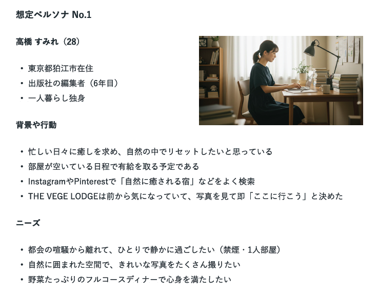 想定ペルソナの背景や行動を読み込み、どんなことを求めているのか・それはどうしたら叶えることができるのかを考え、改善案に反映させました。また、自分が普段類似のwebサイトを使用するときに感じた煩わしさや改善案を考えながら作成しました。